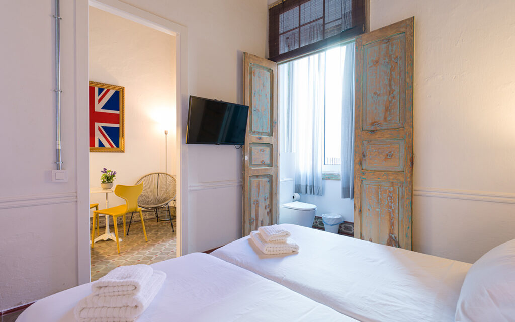 Jackie is one of our smaller rooms with a very cozy bedroom, a modern bathroom, and an entrance area with kitchen. It is on the entrance level and easily accessible.